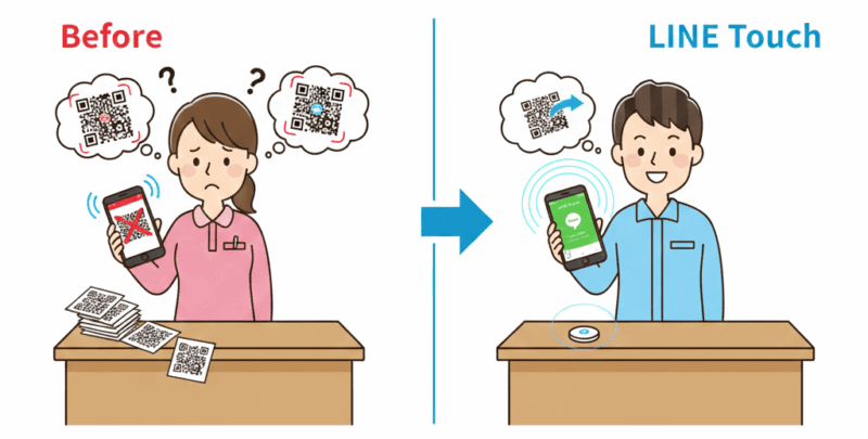 LINEタッチは、物理的な接触を必須とし、不正防止機能を備えているため、「不正利用の根絶」と「QRコード差し替え作業からの解放」を同時に実現できます。