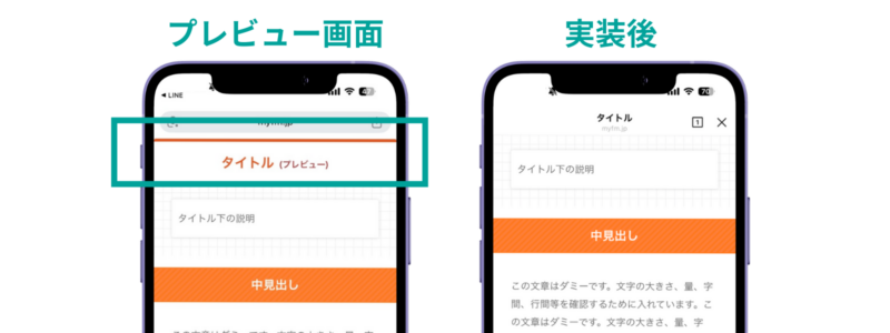 「トーク内ブラウザ(大)」でタイトルが表示されないのは、スマホの機種やLINEの仕様によって、ヘッダー部分が隠れてしまうことがあるからです。