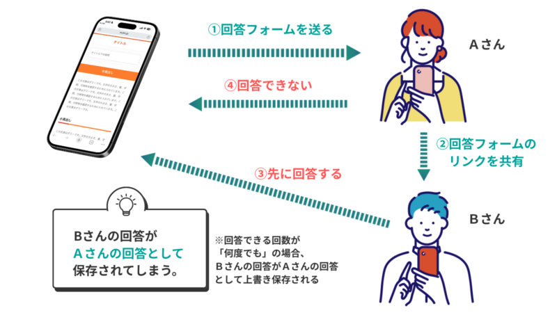 「回答は1回まで」と設定している場合、Bさんが先に回答すると、本来のターゲットであるAさんが回答できなくなります。