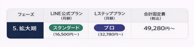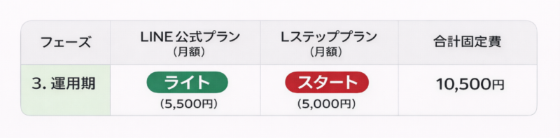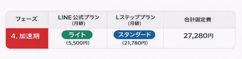 LINE公式とLステップを合わせ、月額約1万円のコストをかけるフェーズです。
