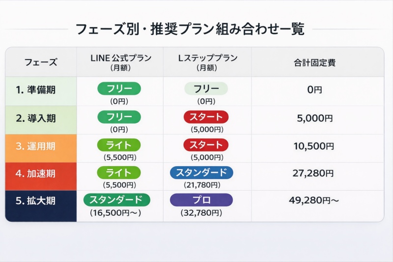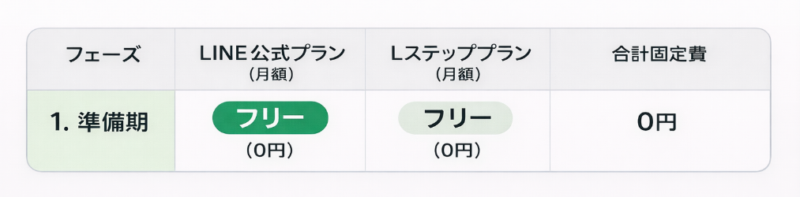プラン: LINE公式(フリー 0円)× Lステップ(スタート 5,000円)