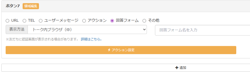 リッチメニューのボタンにキテキストを設定(例:「アンケート」)