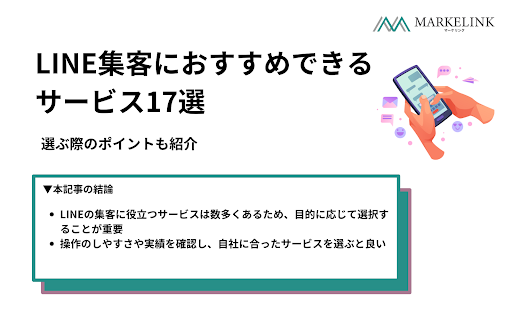 本記事では、LINE集客におすすめのサービス17選を紹介します。LINE集客のサービスを選ぶ際のポイントもお伝えするので、ぜひ最後までご覧ください。